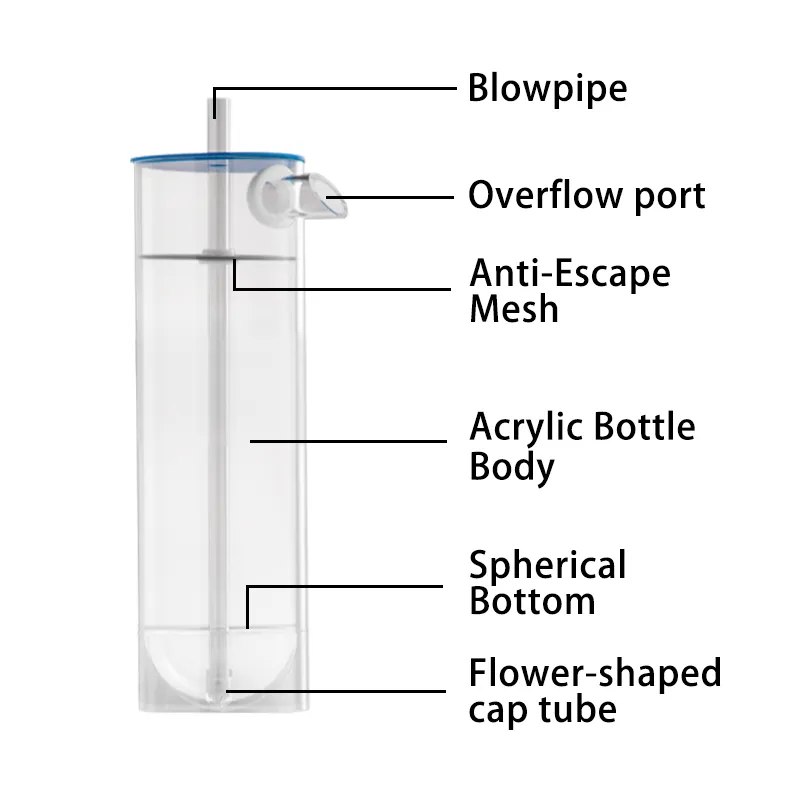 המטיפה מתאימה לטווח רחבה של דגים, כמו טילאפיה, ענקים, סטורון, שרק, קרפ ועוד. הביצי דגים צפים באופן שווה במים ותא השכפול עם כובע הבקבוק המונע מהביצים להימלט מונע מהביצים להימלט. כאשר הביצים נוצצות לנקניקים, הסירו את רשת האנטי-מלטה כדי שיוכלו לשחות החוצה מלמעלה. החניכית מים מסייעת להוסיף תזונה בקלות כדיurnished התזונה לביצי הדגים.